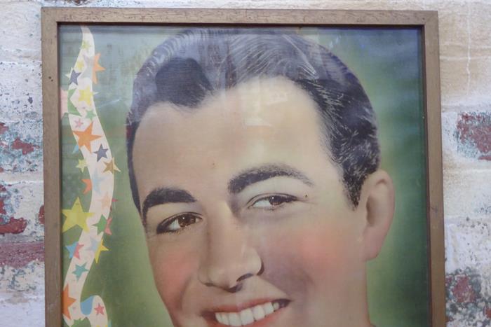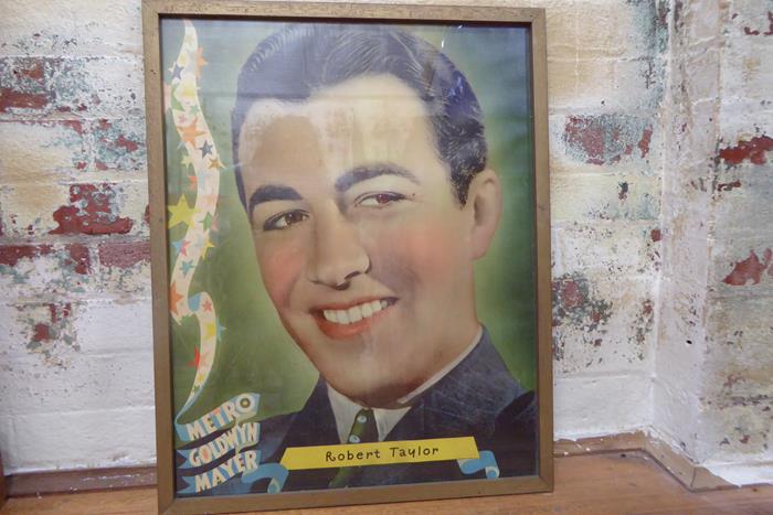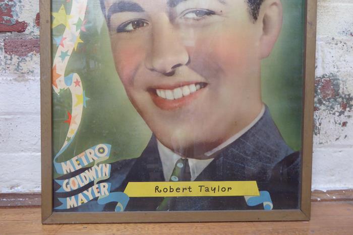 ‘Personality Portrait’ of Robert Taylor from the 1930s that MGM Studios sent to theatres around the country to highlight its stable of stars on the studio lot, Robert Taylor with a cheeky grin and ‘healthy’ rosy cheeks! A rare and original poster framed and under glass on linen stock. This poster is in excellent original condition, never having been folded or pinned