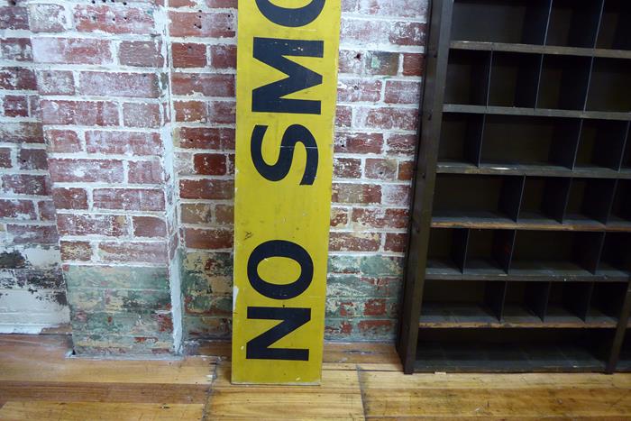 A large 1940s double sided ‘No Smoking’ sign from a flamable industry. Hand painted on timber.