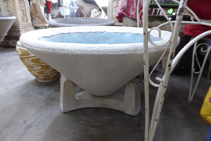 AUSTRALIAN MID CENTURY CONCRETE CONICAL PLANTER ON ITS OWN CONCRETE STAND