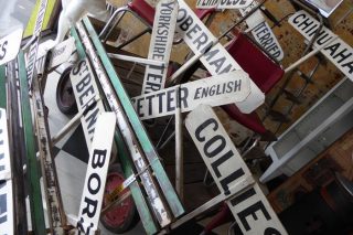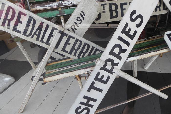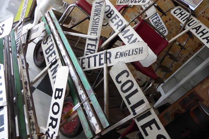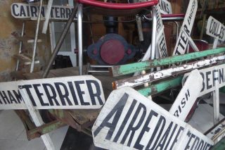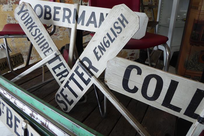 These hand painted double sided dog breed signs date back to the 1940s and were used at the Royal Melbourne Show. A number of different breeds are still available Yorkshire Terrier, St. Bernard, Irish Setter, English Setter, Collies, Sealyham Terrier, Kerry Blue Terrier, Shetland Sheepdogs & Black and Tan Terrier.