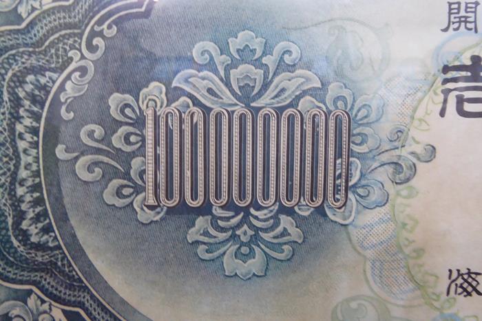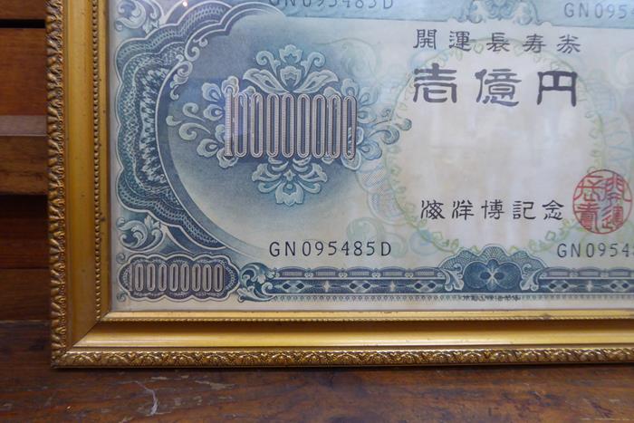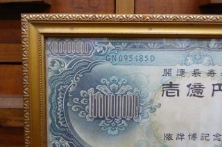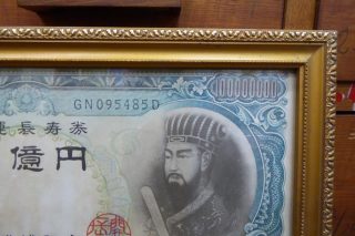 FRAMED 100,000,000 YEN An old novelty item – A framed large double sided one hundred million Yen note from Japan.