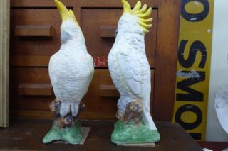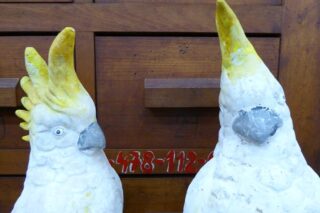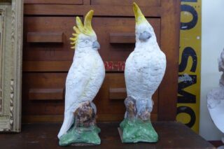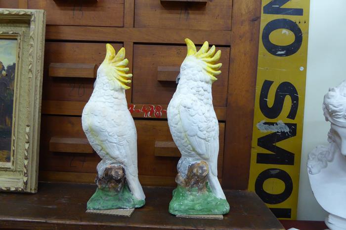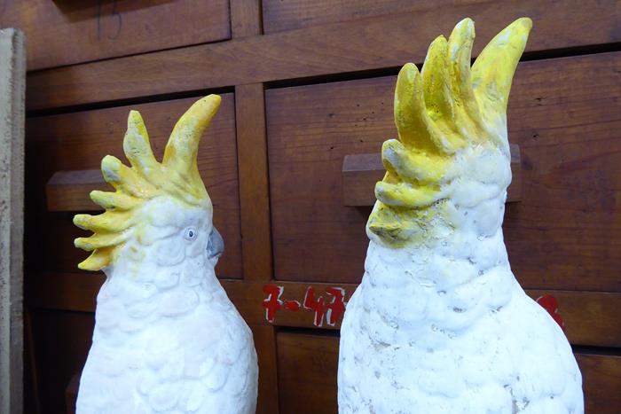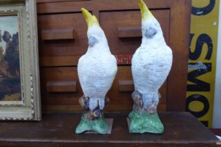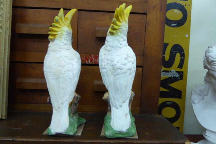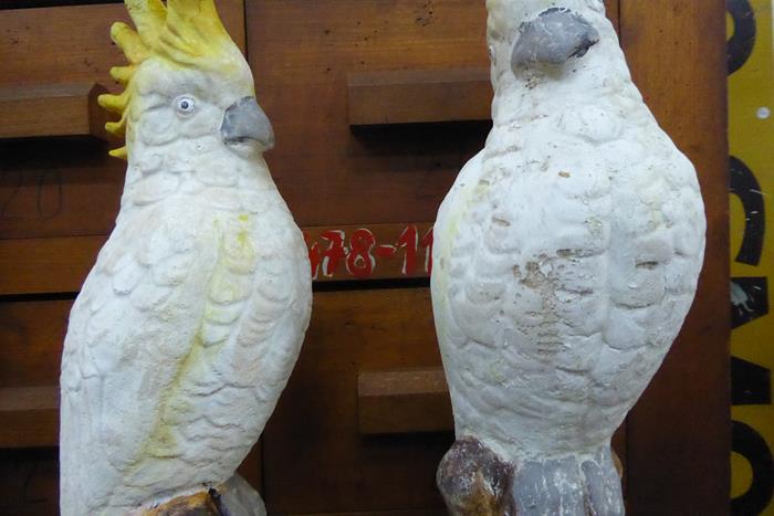 MID CENTURY CONCRETE COCKATOOS SOLD. A wonderful pair of mid century concrete sulphur crested cockatoos. This cheeky couple have lived their lives together since the 1950s.