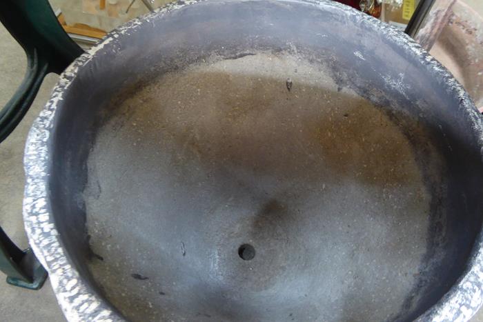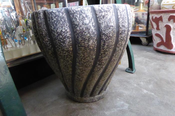 AUSTRALIAN MID CENTURY BLACK SPECKLED SWIRL PLANTER (LARGE) A large Australian mid century planter with a swirl design in black and cream speckled finish. In excellent condition.