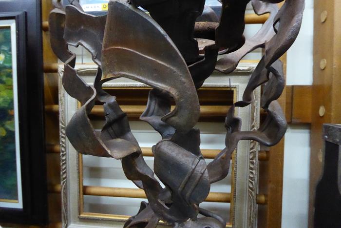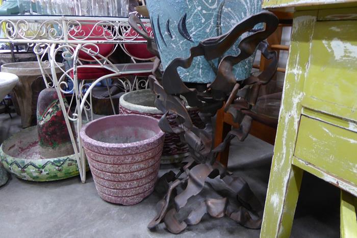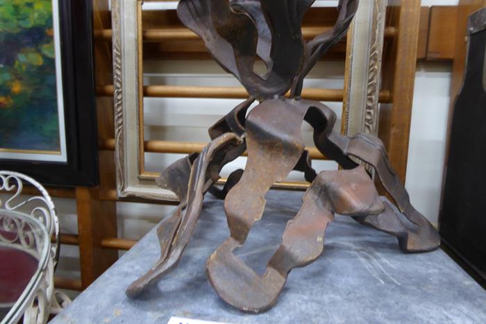ONE SOLD, ONE REMAINING. A pair of classic 1970s Brutalist cast iron plant stands. These classic 1970s decor pieces can be used inside or outdoors. These captivating plant stands are a matching pair with the same measurements and in excellent condition.