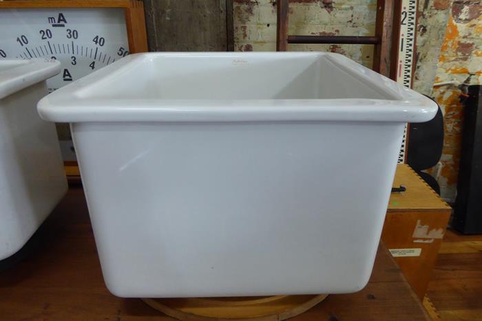 Rare vintage porcelain laboratory sinks or butlers sinks. Excellent condition. We have six sinks available.